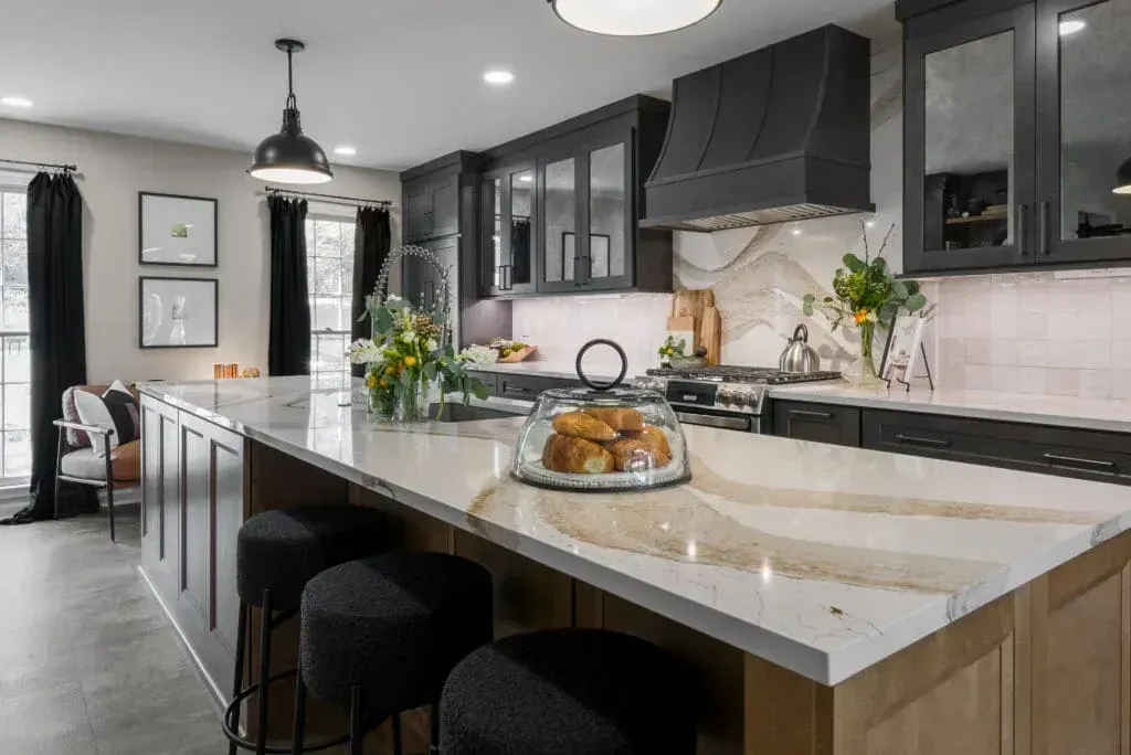 When it comes to making a statement, Milano Quartzite countertops deliver both beauty and durability. In this striking Atlanta kitchen, the creamy gray veining of Milano Quartzite sets the tone—spanning the countertops, full-height backsplash, and waterfall island. The result is a space that feels cohesive, high-end, and ready for everyday living.